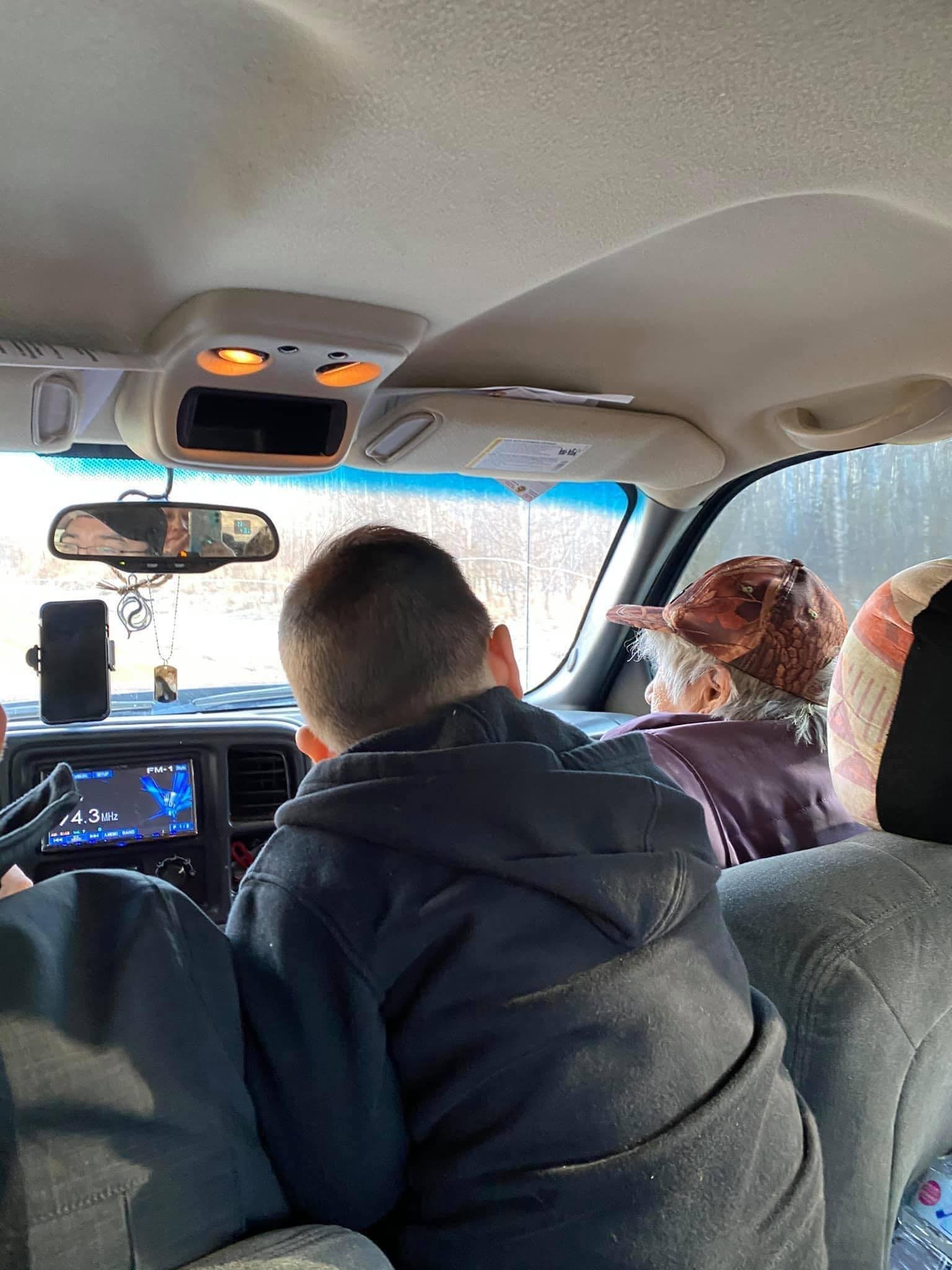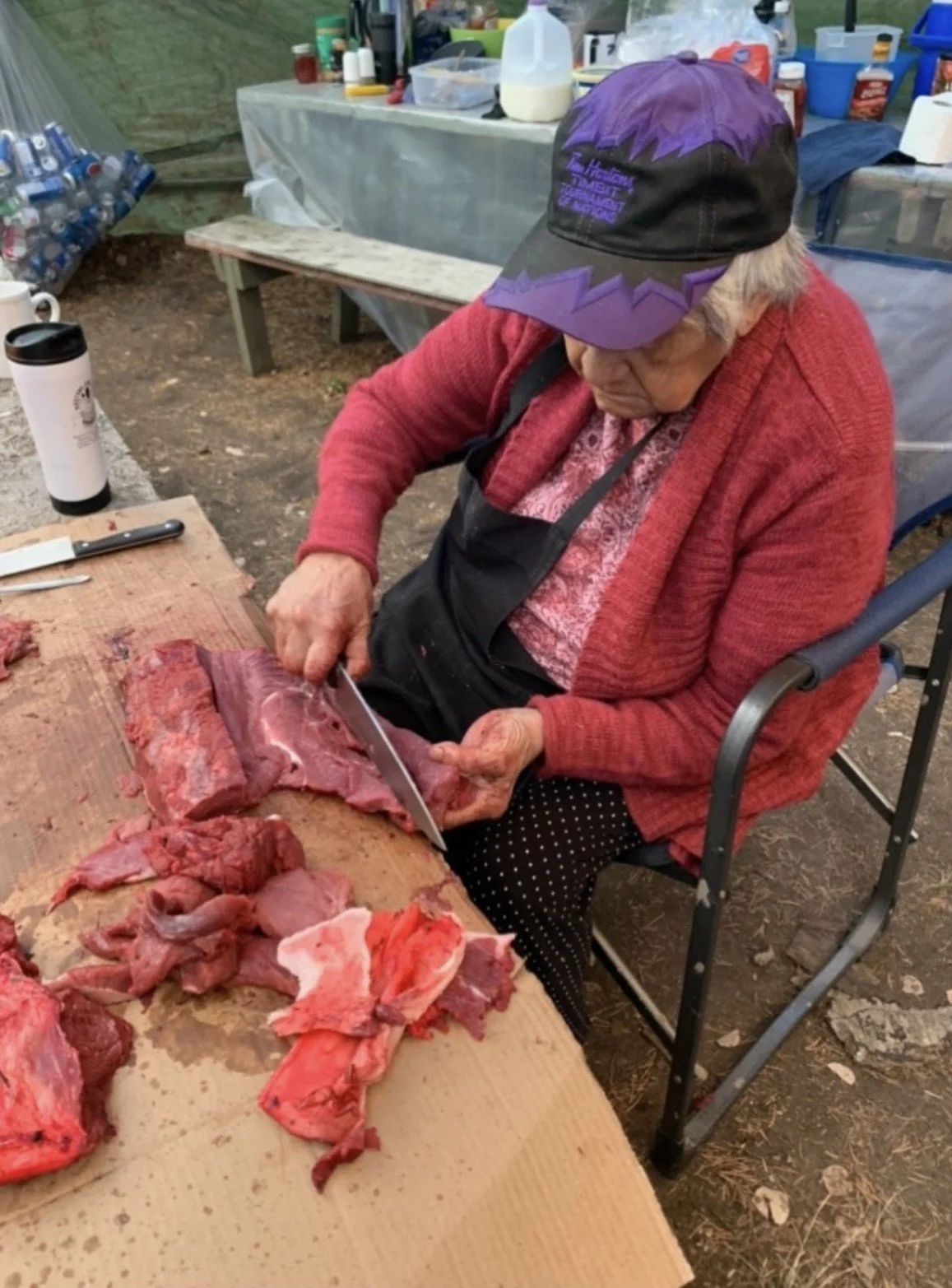 My mom Ida, teaching my nosims, her capan, about the lands and the way my dad used to hunt
